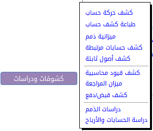 - القسم الأيسر: يتضمن كل النوافذ المتعلقة بالمحاسبة وشؤون الموظفين والدراسات المرتبطة بها.